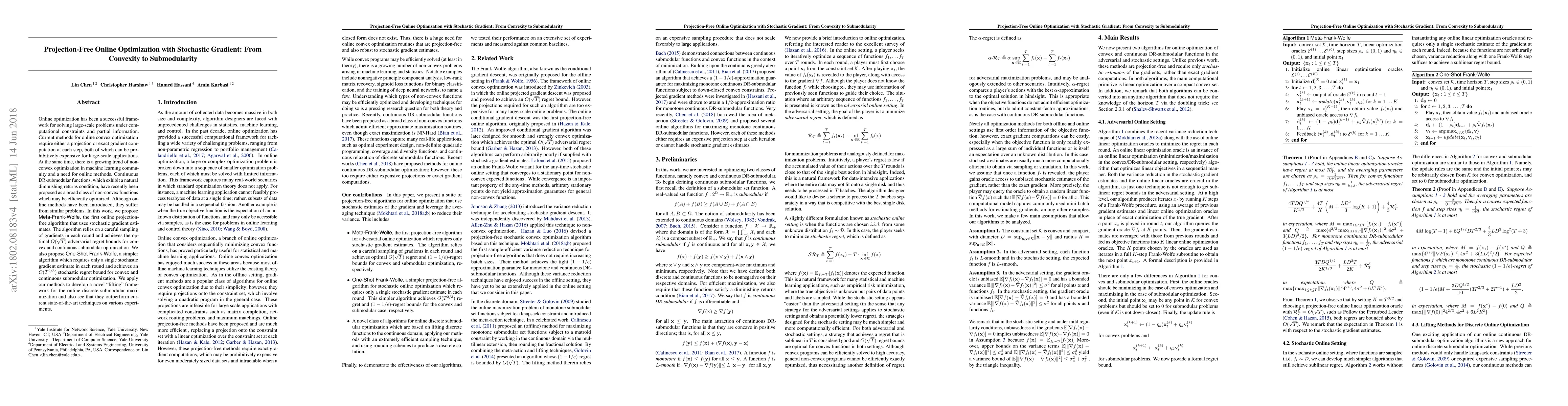This paper introduces two novel online optimization algorithms, Meta-Frank-Wolfe and One-Shot Frank-Wolfe, designed to efficiently handle both convex and continuous submodular optimization without requiring prohibitively expensive projection or exact gradient computations. The proposed methods achieve optimal regret bounds and demonstrate superior performance over current techniques in experiments.