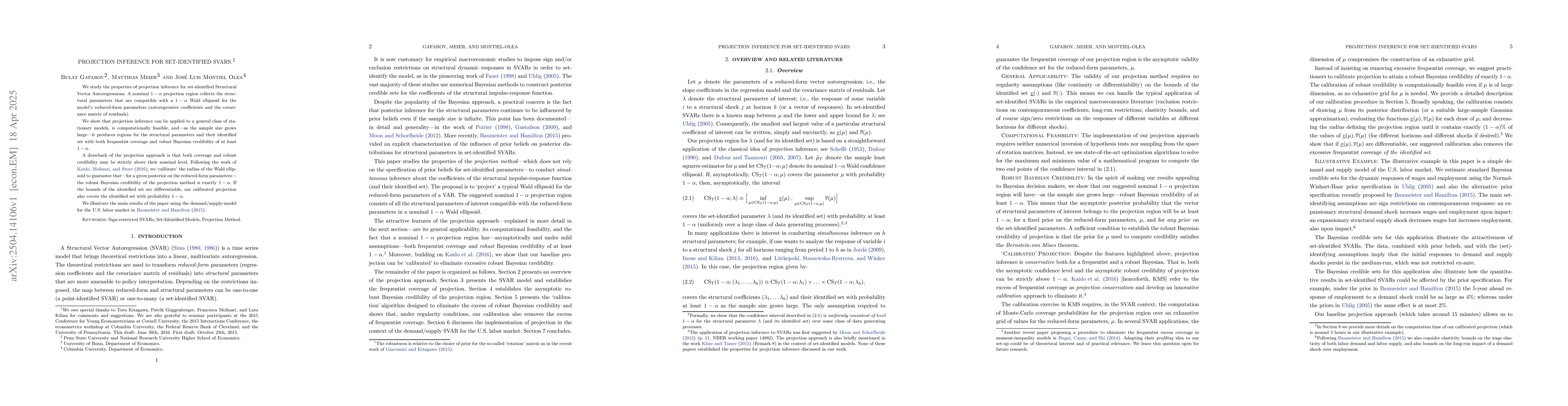 The research examines projection inference for set-identified Structural Vector Autoregressions (SVARs), applying it to a broad class of stationary models and demonstrating its computational feasibility.