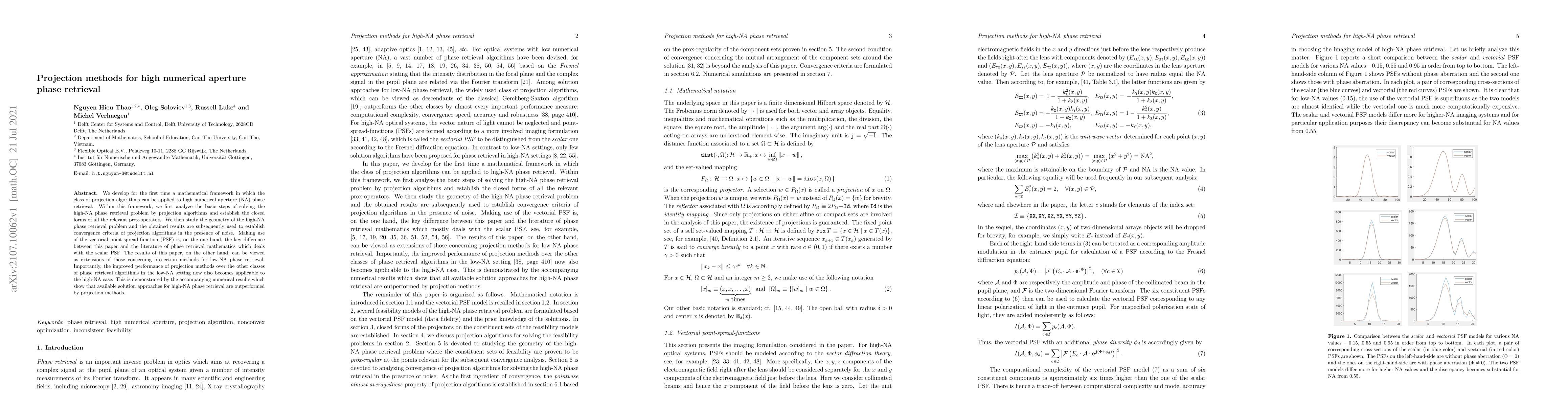 Researchers develop a new framework for high numerical aperture phase retrieval using projection methods, outperforming existing approaches in numerical results.