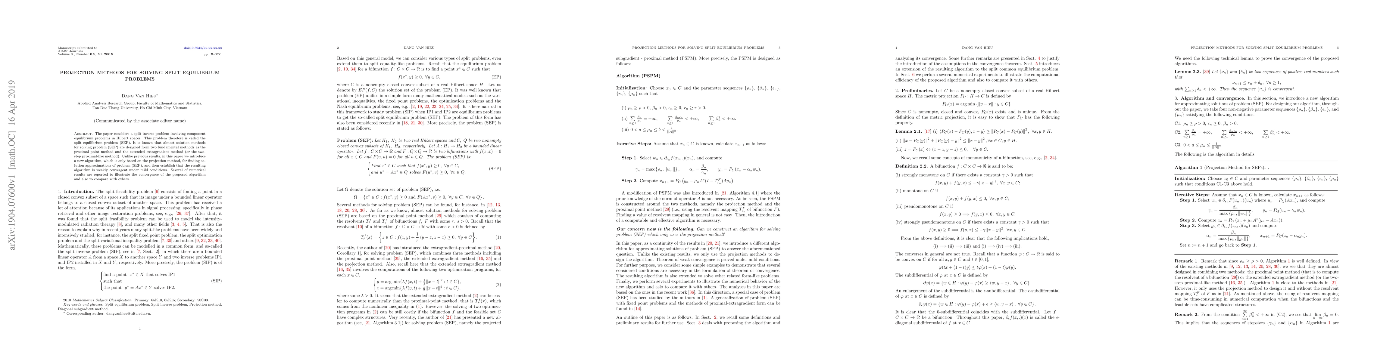 This paper introduces a new projection-based algorithm for solving the split equilibrium problem (SEP) in Hilbert spaces, demonstrating its weak convergence under mild conditions. Numerical results show the effectiveness of the proposed method and compare it with existing proximal and extragradient approaches.
