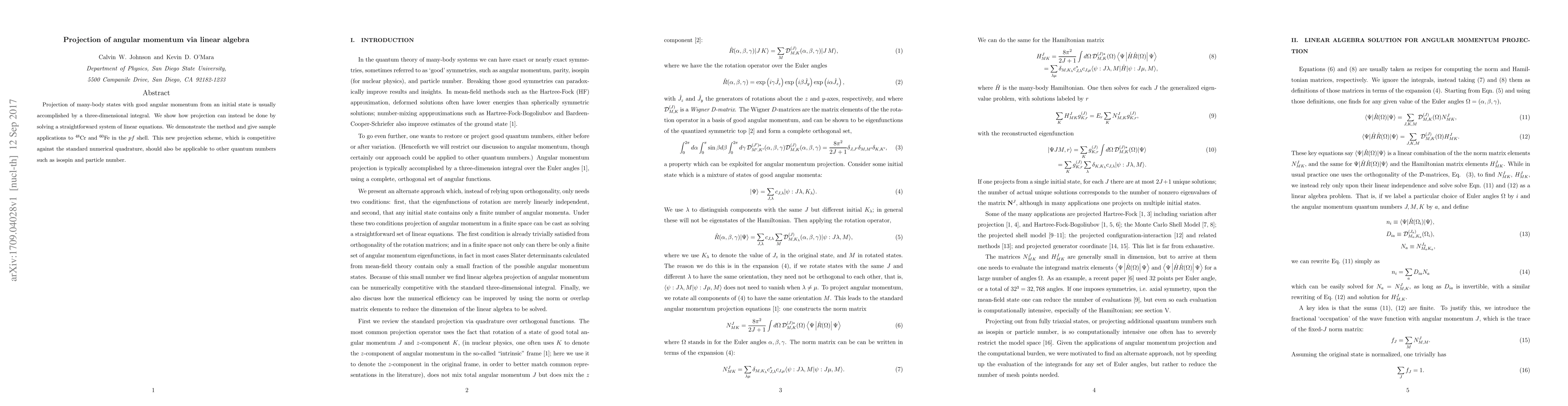 Researchers have developed a new method to project many-body states with good angular momentum using linear algebra instead of complex integrals, offering a potentially faster solution for certain calculations.