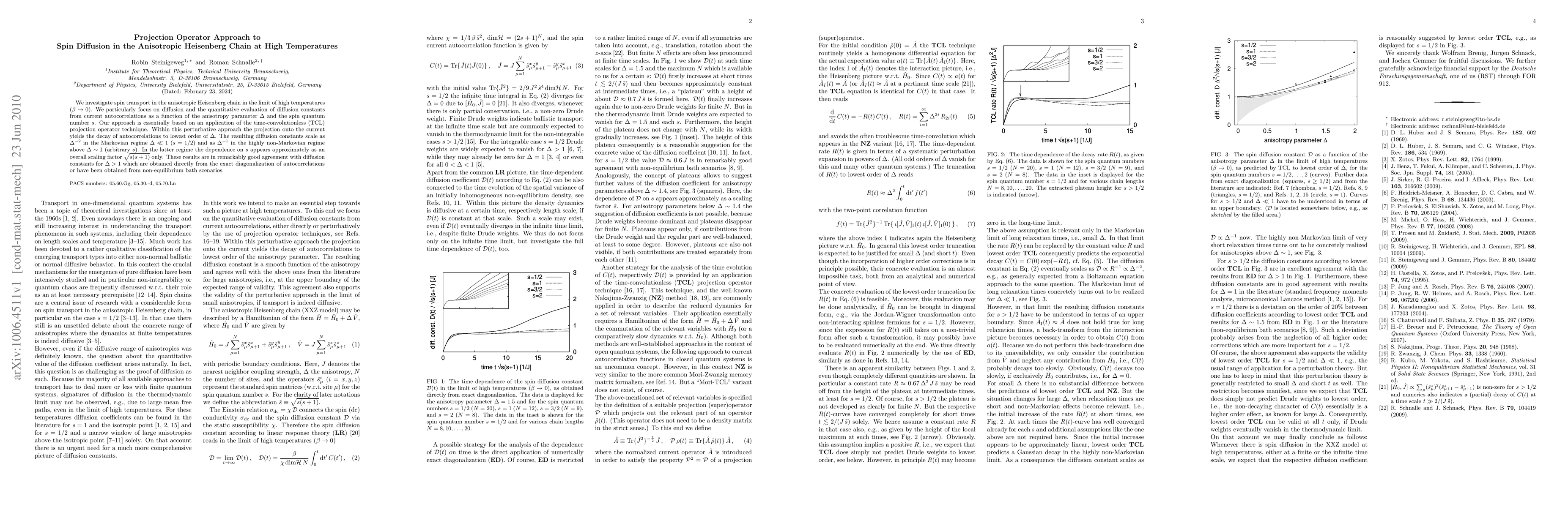 We investigate spin transport in the anisotropic Heisenberg chain in the limit of high temperatures ({\beta} \to 0). We particularly focus on diffusion and the quantitative evaluation of diffusion constants from current autocorrelations as a function of the anisotropy parameter {\Delta} and the spin quantum number s. Our approach is essentially based on an application of the time-convolutionless (TCL) projection operator technique. Within this perturbative approach the projection onto the current yields the decay of autocorrelations to lowest order of {\Delta}. The resulting diffusion constants scale as 1/{\Delta}^2 in the Markovian regime {\Delta}<<1 (s=1/2) and as 1/{\Delta} in the highly non-Markovian regime above {\Delta} \sim 1 (arbitrary s). In the latter regime the dependence on s appears approximately as an overall scaling factor \sqrt{s(s+1)} only. These results are in remarkably good agreement with diffusion constants for {\Delta}>1 which are obtained directly from the exact diagonalization of autocorrelations or have been obtained from non-equilibrium bath scenarios.