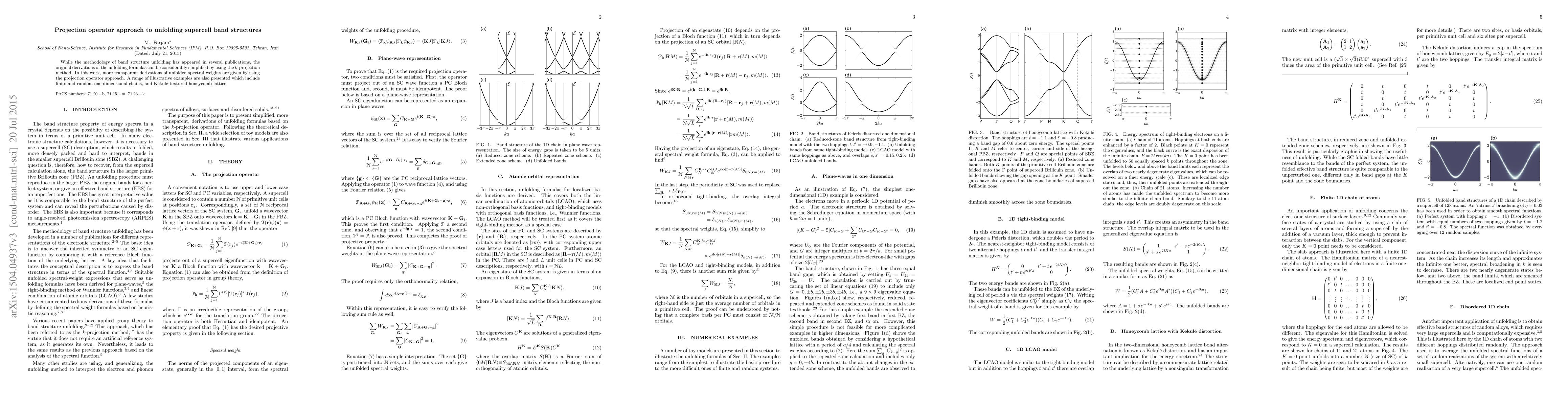 This paper simplifies the derivation of unfolding formulas for supercell band structures using the $k$-projection method and the projection operator approach, providing clearer spectral weight calculations and illustrating with examples like finite and random chains and the Kekulé-textured honeycomb lattice.