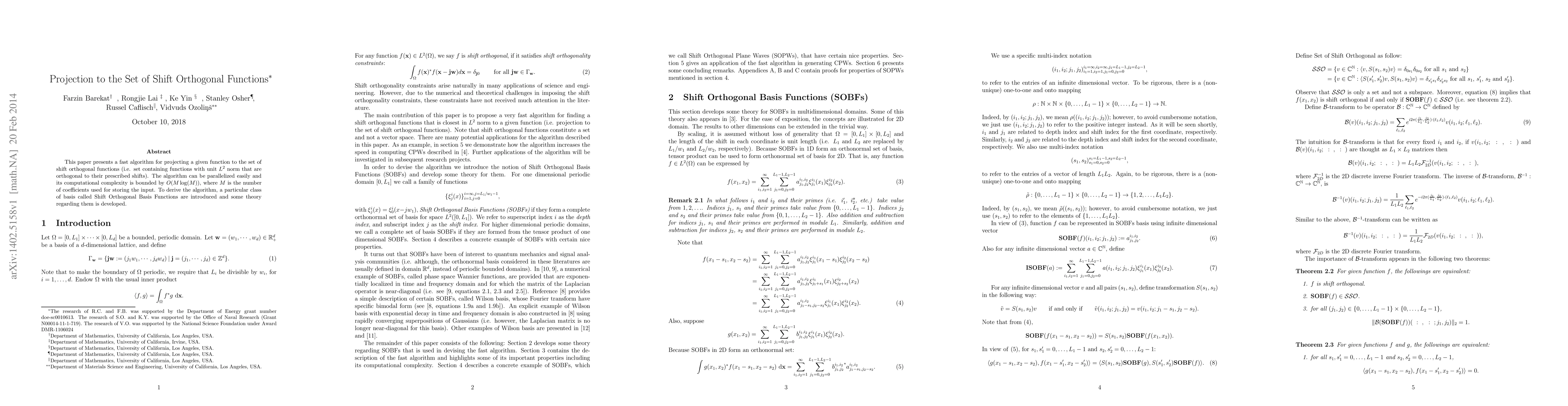 This paper presents a fast algorithm for projecting a given function to the set of shift orthogonal functions (i.e. set containing functions with unit $L^2$ norm that are orthogonal to their prescribed shifts). The algorithm can be parallelized easily and its computational complexity is bounded by $O(M\log(M))$, where $M$ is the number of coefficients used for storing the input. To derive the algorithm, a particular class of basis called Shift Orthogonal Basis Functions are introduced and some theory regarding them is developed.