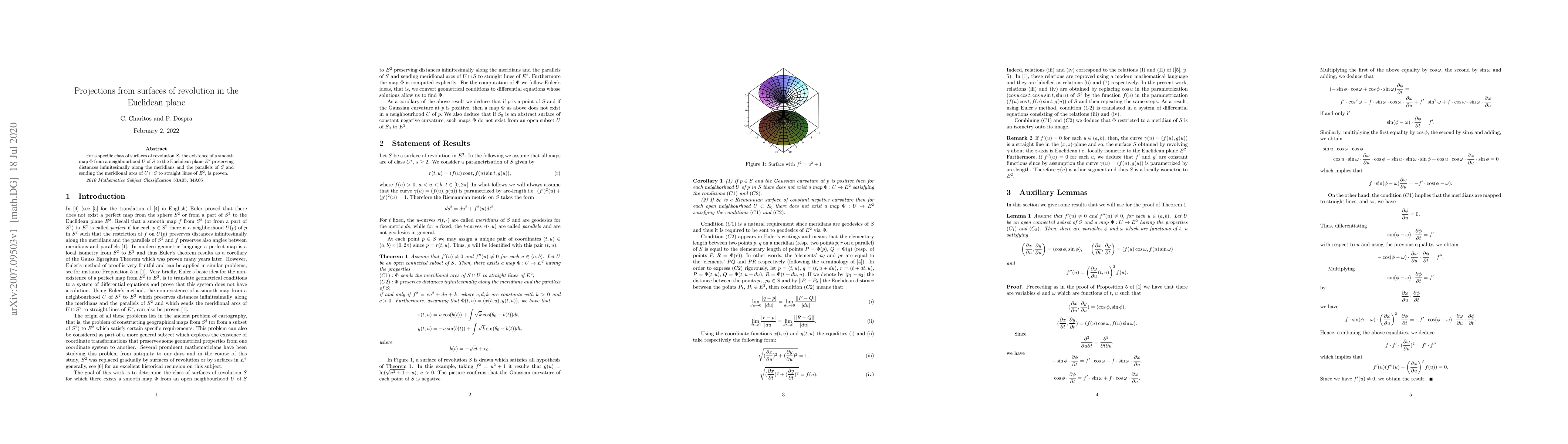 Researchers prove the existence of a smooth map from a specific class of surfaces of revolution to the Euclidean plane, preserving distances along meridians and parallels.