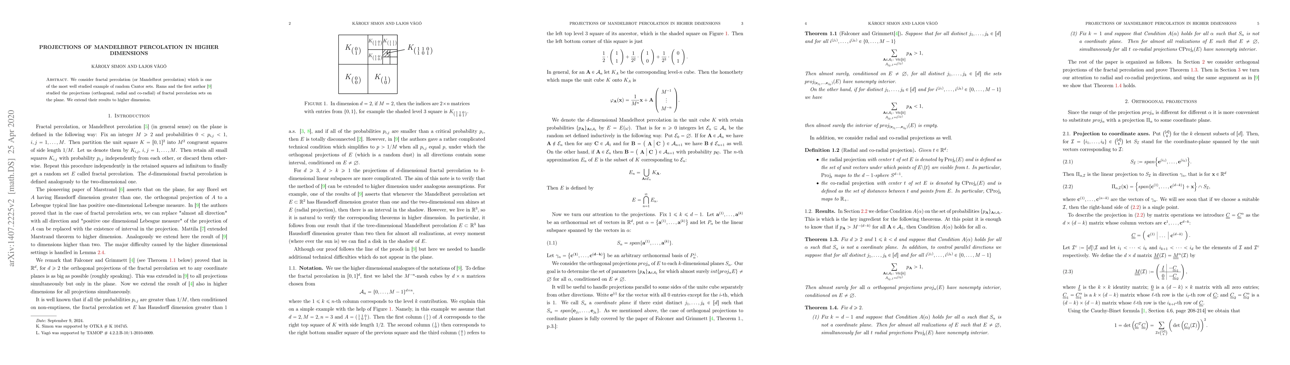 This paper extends previous studies on the projections of fractal percolation sets, specifically Mandelbrot percolation, to higher dimensions, building on the foundational work of Rams and the first author on two-dimensional projections.