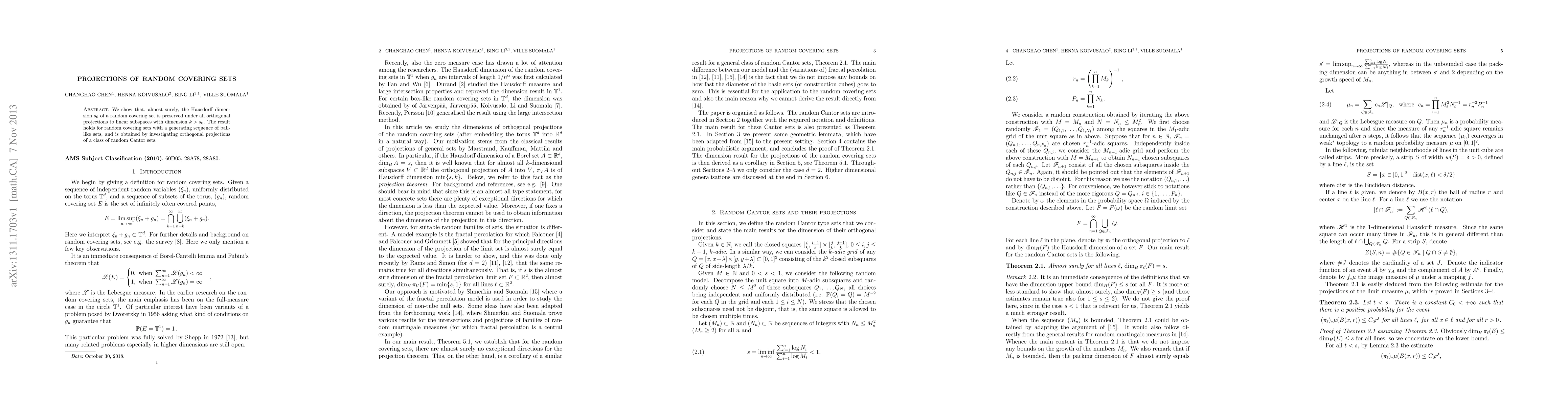 The paper investigates random covering sets on a torus using a sequence of ball-like sets, applying mass-transport principles and induction to construct a Cantor-like subset F. The Hausdorff dimension of the projections of this set is analyzed.