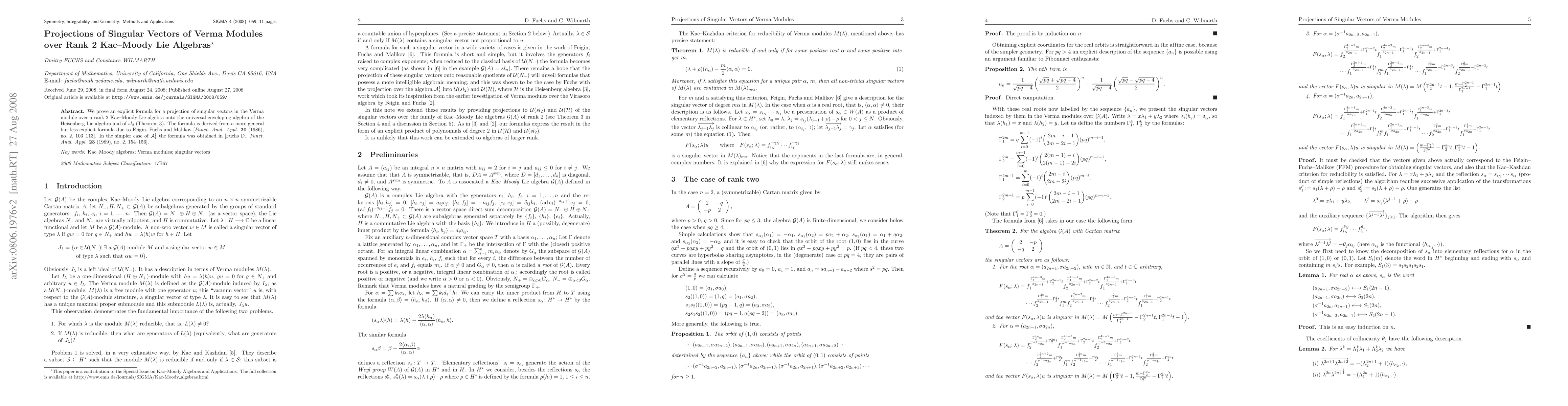 This paper provides an explicit formula for projecting singular vectors in Verma modules over rank 2 Kac-Moody Lie algebras onto the universal enveloping algebra of the Heisenberg Lie algebra and $sl_{2}$. The formula is derived from a more general but less explicit formula by Feigin, Fuchs, and Malikov.