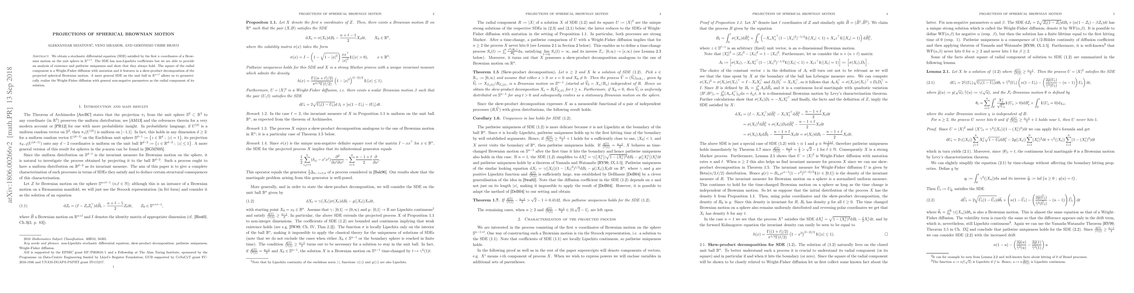 Researchers develop a stochastic differential equation to model Brownian motion on the unit sphere in higher dimensions, showing that it is solvable and pathwise unique despite having non-Lipschitz coefficients.