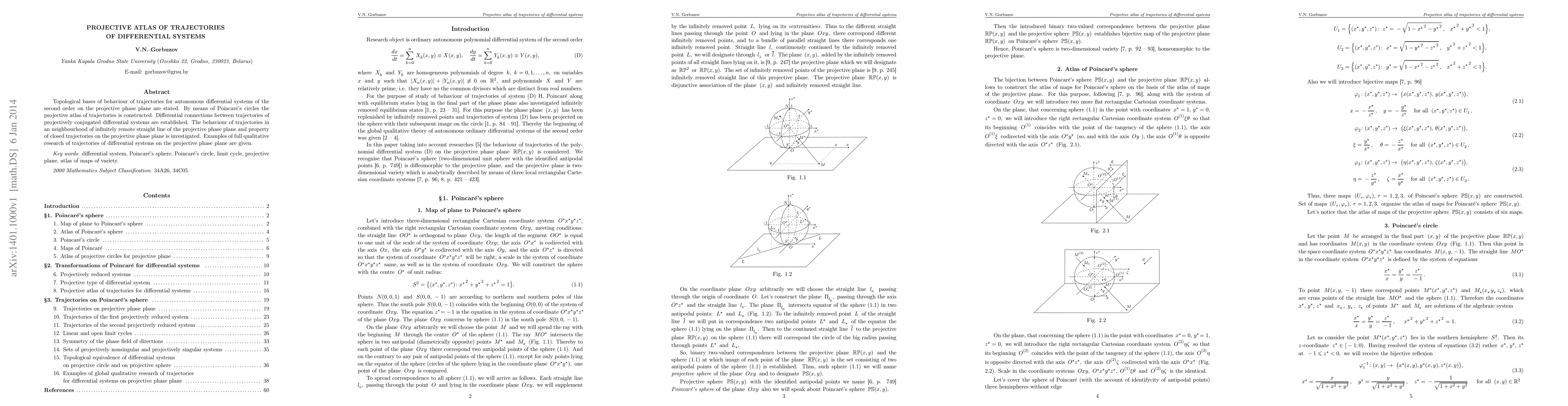 Topological bases of behaviour of trajectories for autonomous differential systems of the second order on the projective phase plane are stated. By means of Poincare's circles the projective atlas of trajectories is constructed. Differential connections between trajectories of projectively conjugated differential systems are established. The behaviour of trajectories in an neighbourhood of infinitely remote straight line of the projective phase plane and property of closed trajectories on the projective phase plane is investigated. Examples of full qualitative research of trajectories of differential systems on the projective phase plane are given.