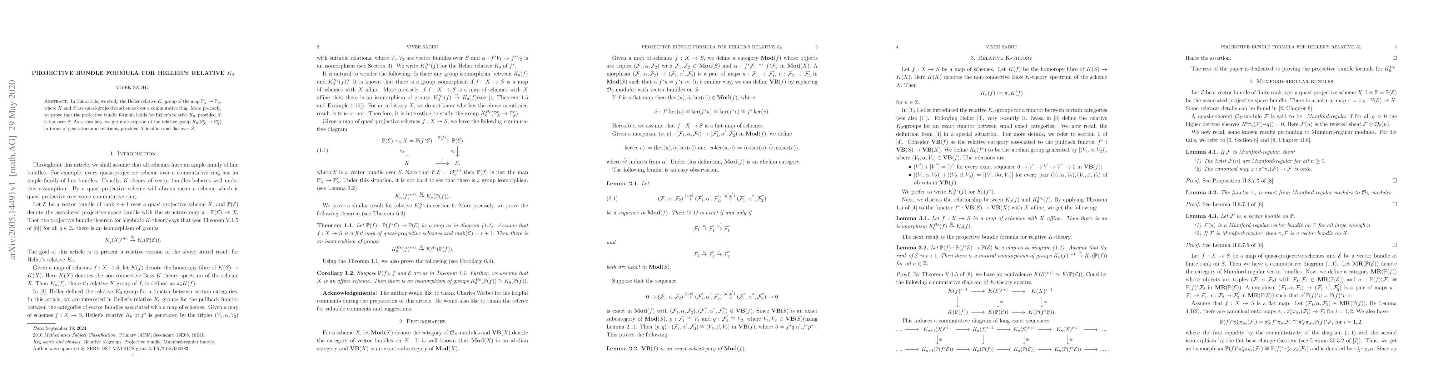 The paper proves a projective bundle formula for Heller's relative K_0 group of quasi-projective schemes over a commutative ring, assuming X is flat over S.