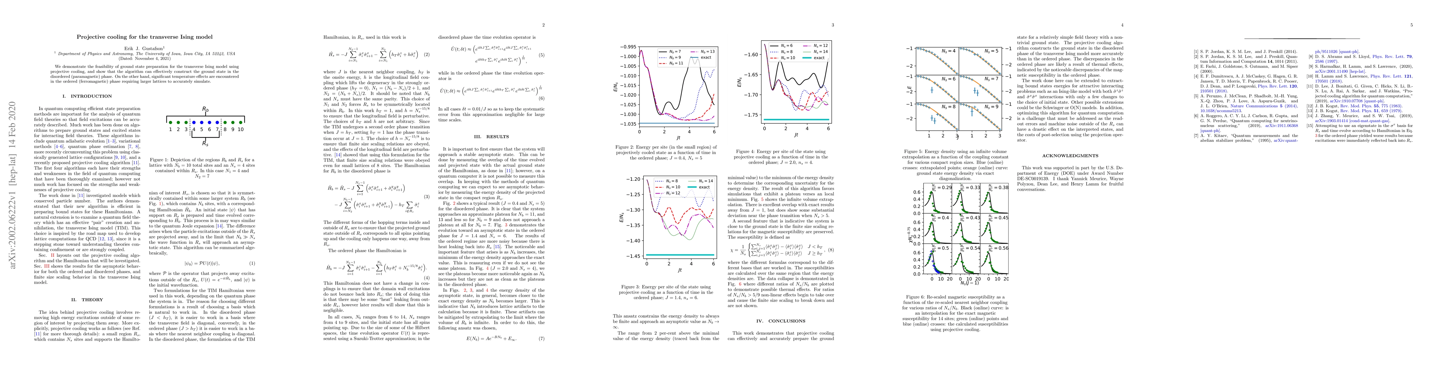 This paper explores the use of projective cooling to prepare the ground state of the transverse Ising model, successfully achieving this in the disordered phase. However, in the ordered phase, significant temperature effects necessitate larger lattices for accurate simulation.