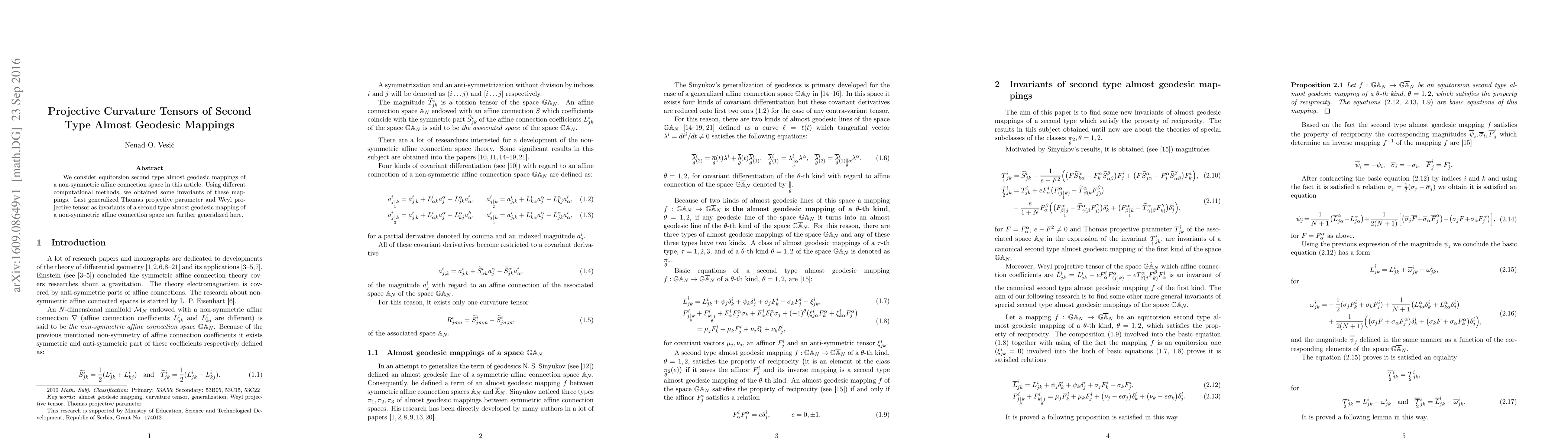 We consider equitorsion second type almost geodesic mappings of a non-symmetric affine connection space in this article. Using different computational methods, we obtained some invariants of these mappings. Last generalized Thomas projective parameter and Weyl projective tensor as invariants of a second type almost geodesic mapping of a non-symmetric affine connection space are further generalized here.