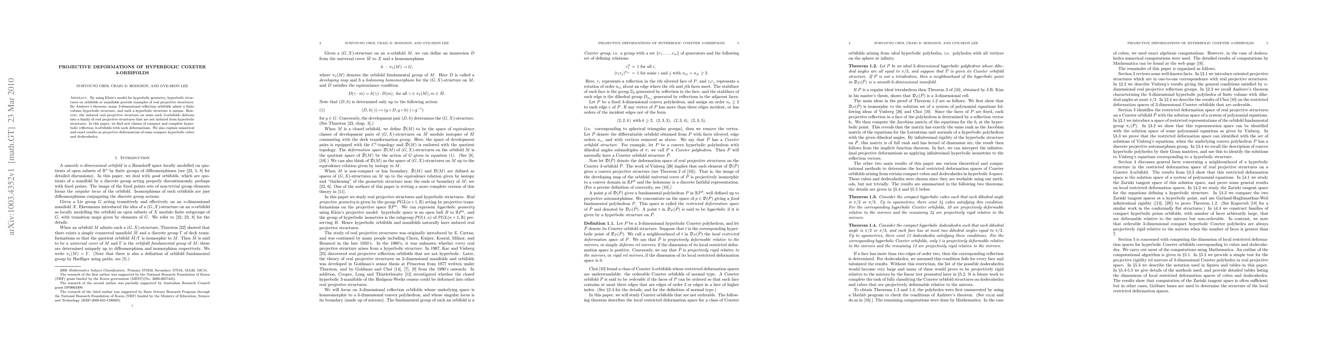 This paper explores the projective deformations of hyperbolic Coxeter 3-orbifolds, showing that while many hyperbolic structures are unique, some real projective structures can deform into new families. It identifies new classes of compact, complete hyperbolic reflection 3-orbifolds exhibiting these deformations, with detailed results on specific compact hyperbolic cubes and dodecahedra.