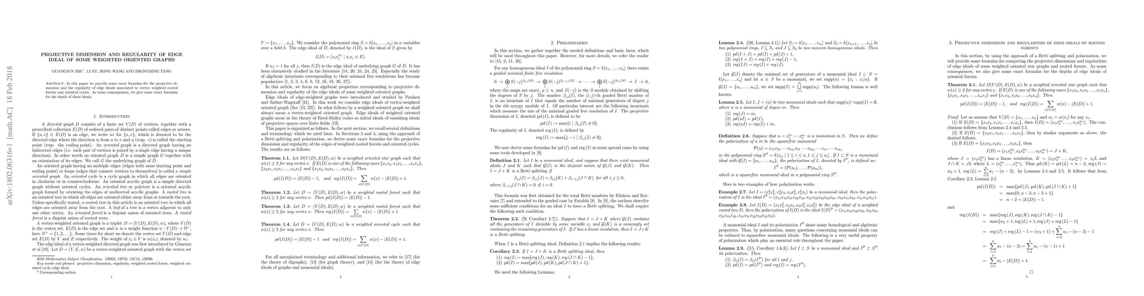 In this paper we provide some exact formulas for the projective dimension and the regularity of edge ideals associated to vertex weighted rooted forests and oriented cycles. As some consequences, we give some exact formulas for the depth of these ideals.