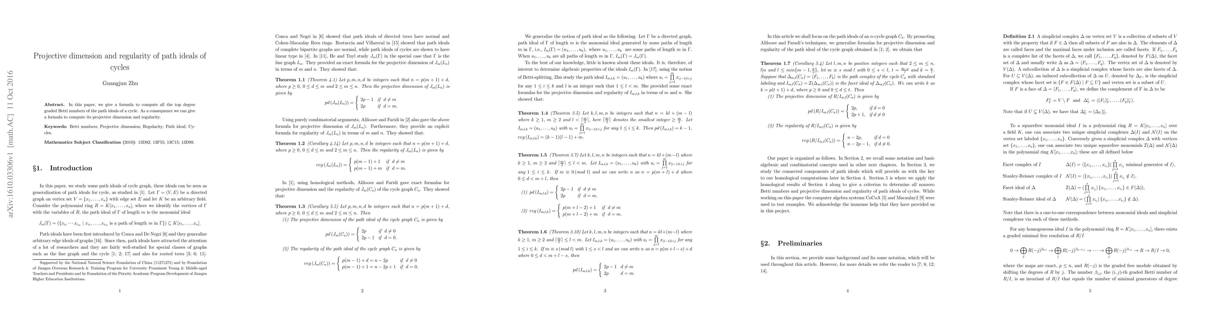 This paper provides a formula to calculate top degree graded Betti numbers of cycle path ideals, enabling computation of projective dimension and regularity.