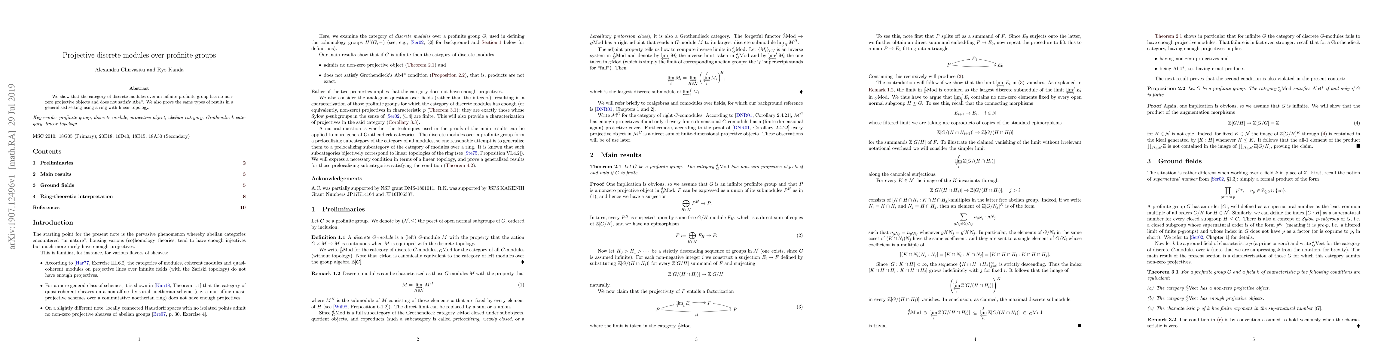We show that the category of discrete modules over an infinite profinite group has no non-zero projective objects and does not satisfy Ab4*. We also prove the same types of results in a generalized setting using a ring with linear topology.