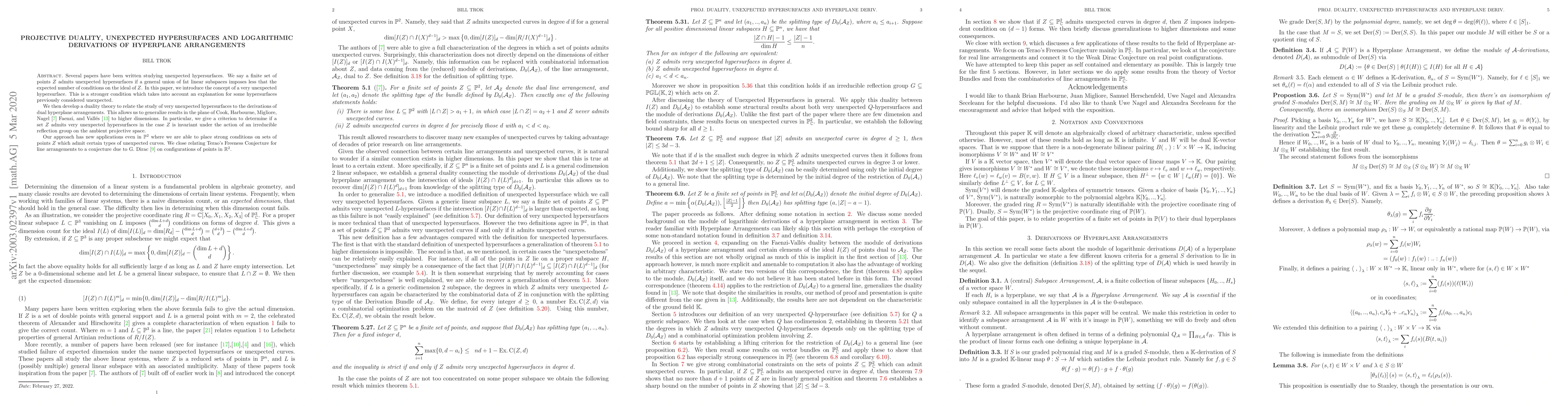 This paper explores the concept of very unexpected hypersurfaces in the context of projective duality and hyperplane arrangements, developing a new duality theory that generalizes existing results to higher dimensions. It provides criteria for determining if a set of points admits such hypersurfaces and connects Terao's Freeness Conjecture with a conjecture by G. Dirac.