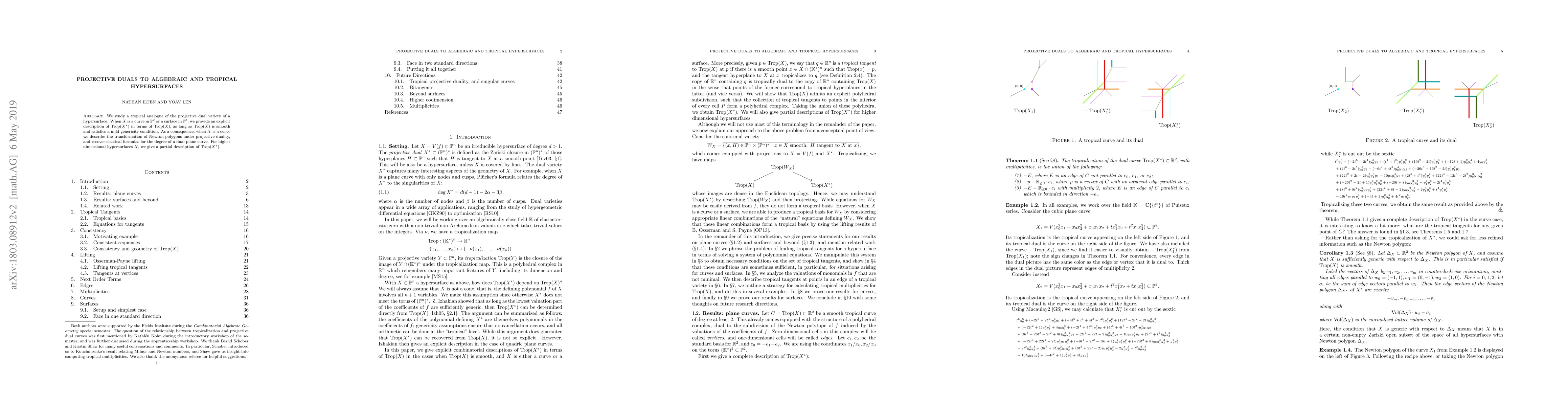 This paper studies tropical duals of algebraic hypersurfaces, providing explicit descriptions for curves in 2D and surfaces in 3D space, with implications for the transformation of Newton polygons under projective duality.