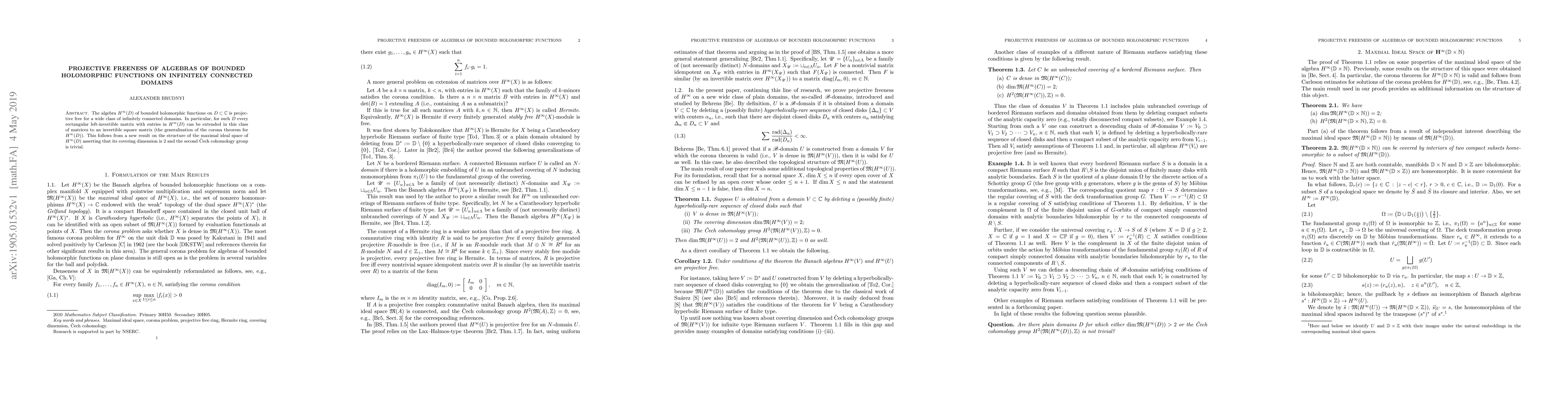 The algebra of bounded holomorphic functions on infinitely connected domains is projectively free, meaning certain rectangular matrices can be extended to invertible square matrices.