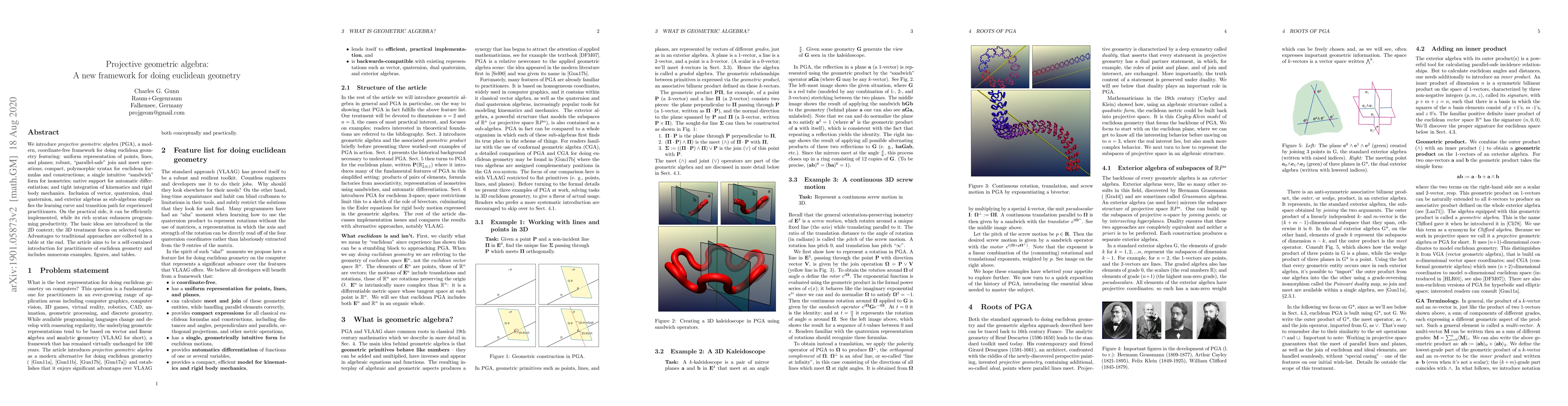 This paper introduces projective geometric algebra (PGA) as a modern, coordinate-free framework for Euclidean geometry, featuring uniform representation and robust operations. It aims to enhance programming productivity and offers a self-contained tutorial with examples and comparisons to traditional methods.