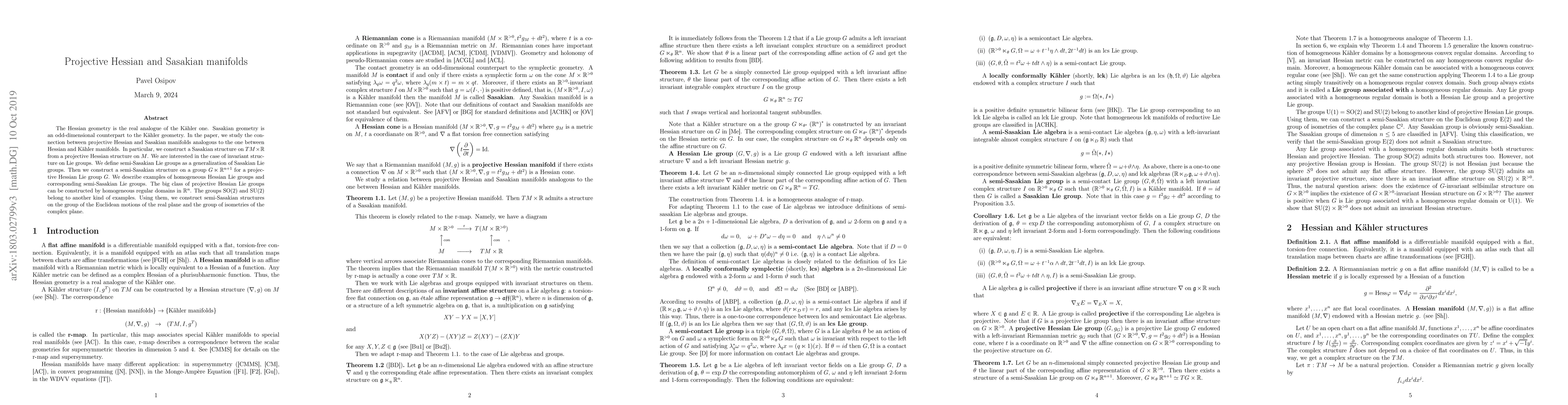 This paper explores the connection between projective Hessian and Sasakian geometries, particularly focusing on constructing Sasakian structures from projective Hessian ones on manifolds, including Lie groups. It introduces semi-Sasakian Lie groups and constructs semi-Sasakian structures on specific groups, providing examples of homogeneous Hessian Lie groups and their corresponding semi-Sasakian counterparts.