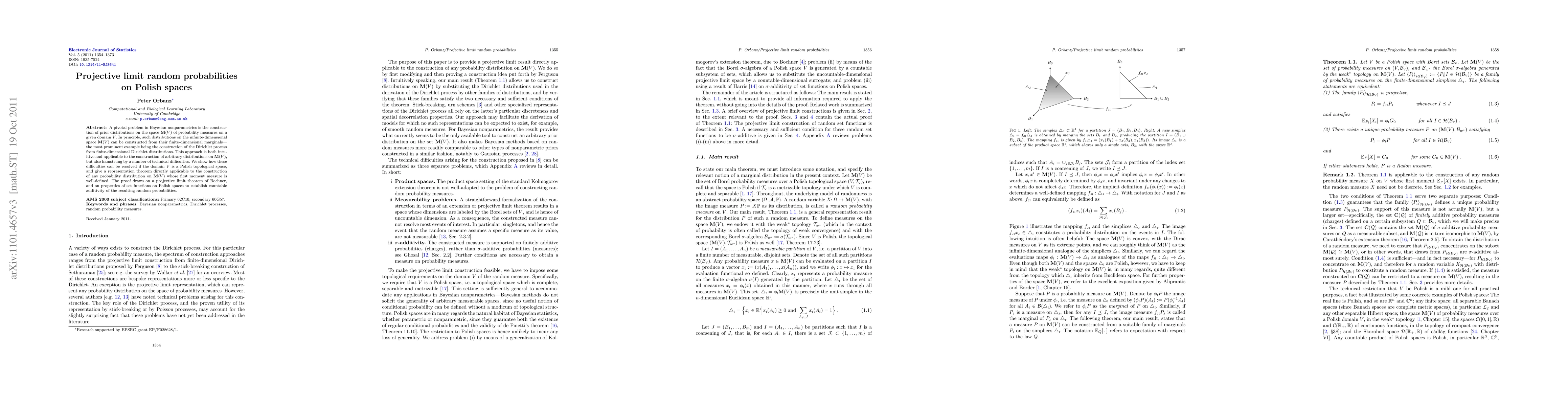 A pivotal problem in Bayesian nonparametrics is the construction of prior distributions on the space M(V) of probability measures on a given domain V. In principle, such distributions on the infinite-dimensional space M(V) can be constructed from their finite-dimensional marginals---the most prominent example being the construction of the Dirichlet process from finite-dimensional Dirichlet distributions. This approach is both intuitive and applicable to the construction of arbitrary distributions on M(V), but also hamstrung by a number of technical difficulties. We show how these difficulties can be resolved if the domain V is a Polish topological space, and give a representation theorem directly applicable to the construction of any probability distribution on M(V) whose first moment measure is well-defined. The proof draws on a projective limit theorem of Bochner, and on properties of set functions on Polish spaces to establish countable additivity of the resulting random probabilities.
