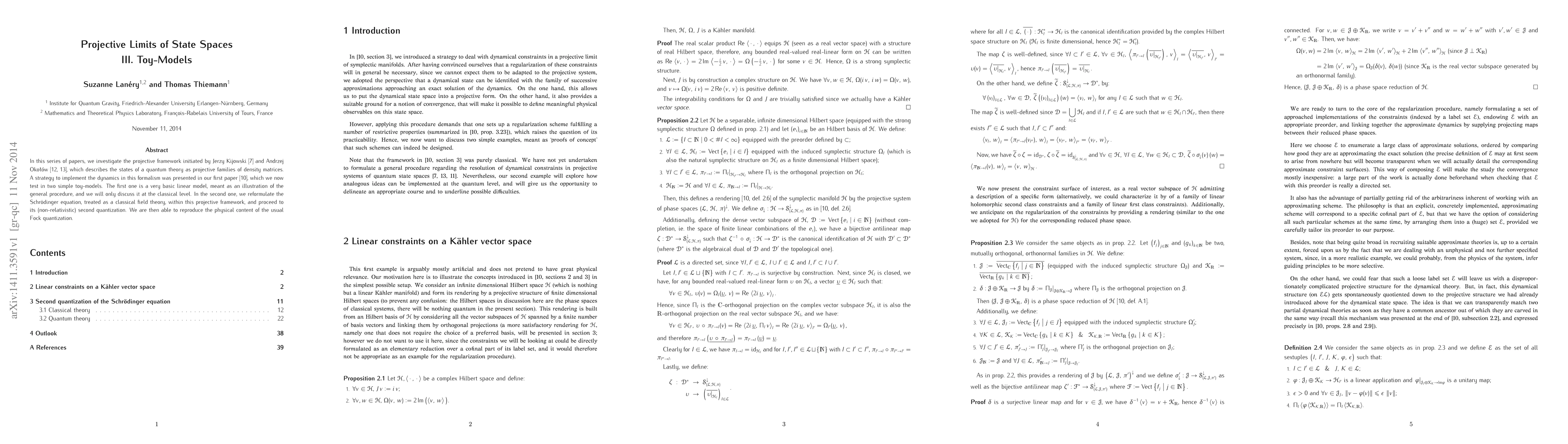 This paper explores the projective framework for quantum states, initiated by Kijowski and Ołę́sawski, through two toy-models. The first model is a simple linear system illustrating the classical procedure, while the second reformulates the Schrödinger equation in a projective framework and undergoes second quantization, reproducing standard Fock quantization.