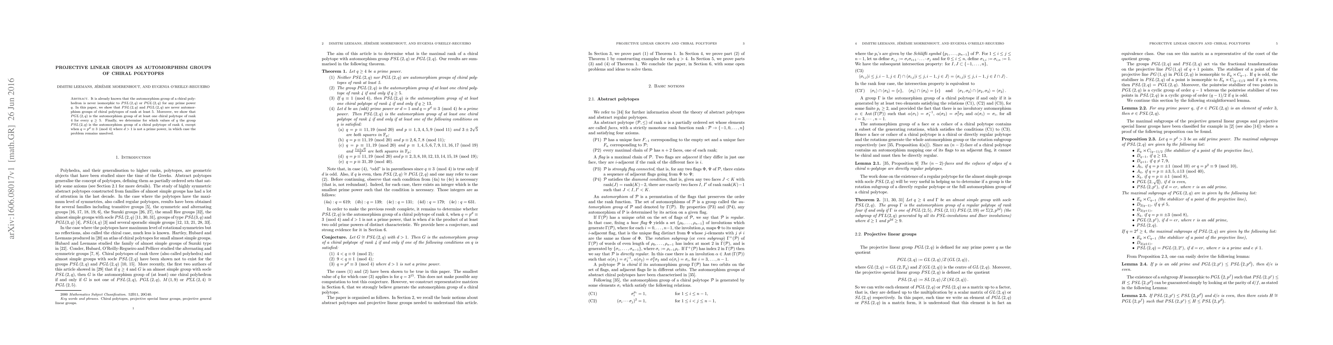 This paper investigates the automorphism groups of chiral polytopes, demonstrating that $PSL(2,q)$ and $PGL(2,q)$ cannot be such groups for chiral polytopes of rank at least $5$. It also shows that $PGL(2,q)$ is the automorphism group for some chiral polytopes of rank $4$ for $q \geq 5$.