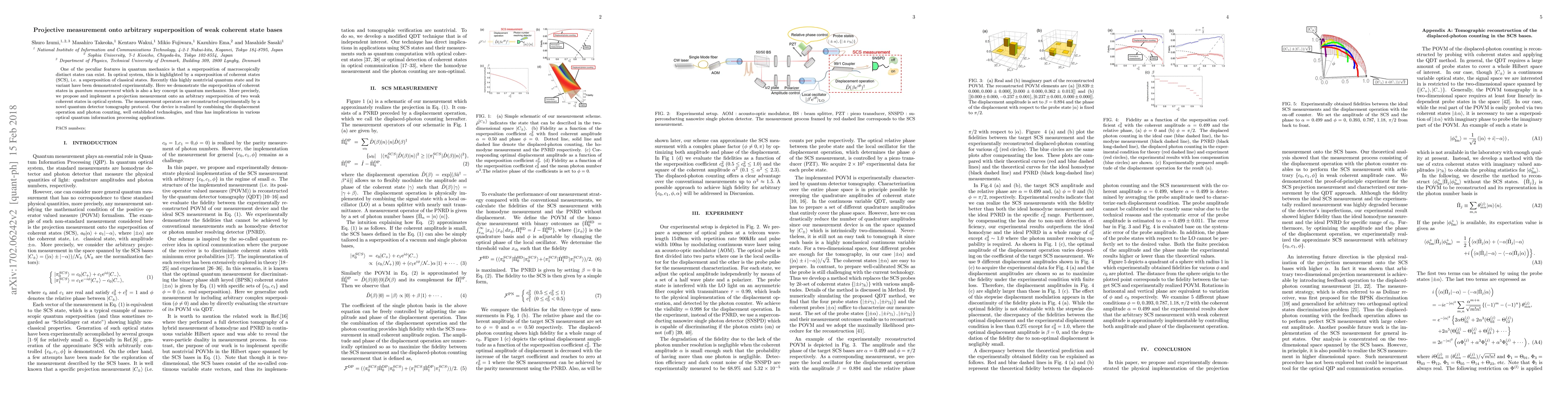 This paper proposes and demonstrates a projective measurement technique for arbitrary superpositions of coherent state bases in optical quantum systems. It utilizes a novel quantum detector tomography protocol and combines displacement operations and photon counting to achieve this measurement, highlighting its potential for various optical quantum information processing applications.