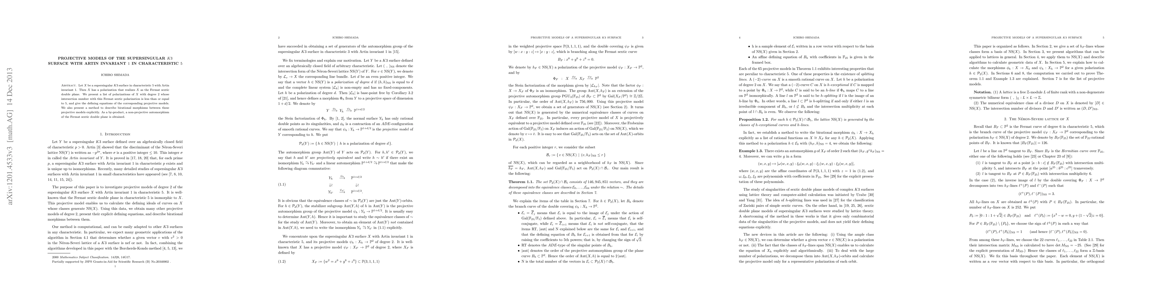 This paper studies projective models of a supersingular K3 surface in characteristic 5 with Artin invariant 1, demonstrating how it can be represented by the Fermat sextic double plane. It provides a list of polarizations and their defining equations, and describes methods for birational morphisms between these models, including a non-projective automorphism of the Fermat sextic surface.