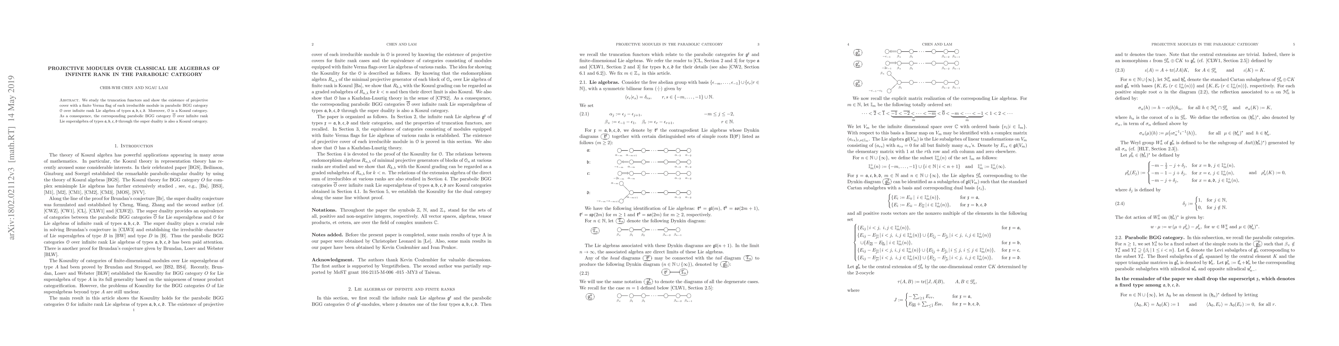 We study the truncation functors and show the existence of projective cover of each irreducible module in parabolic BGG category $\mathcal O$ over infinite rank Lie algebra of types $\mathfrak{a,b,c,d}$. Moreover, $\mathcal O$ is a Koszul category. As a consequence, the corresponding parabolic BGG category $\overline{\mathcal O}$ over infinite rank Lie superalgebra of types $\mathfrak{a,b,c,d}$ through the super duality is also a Koszul category.