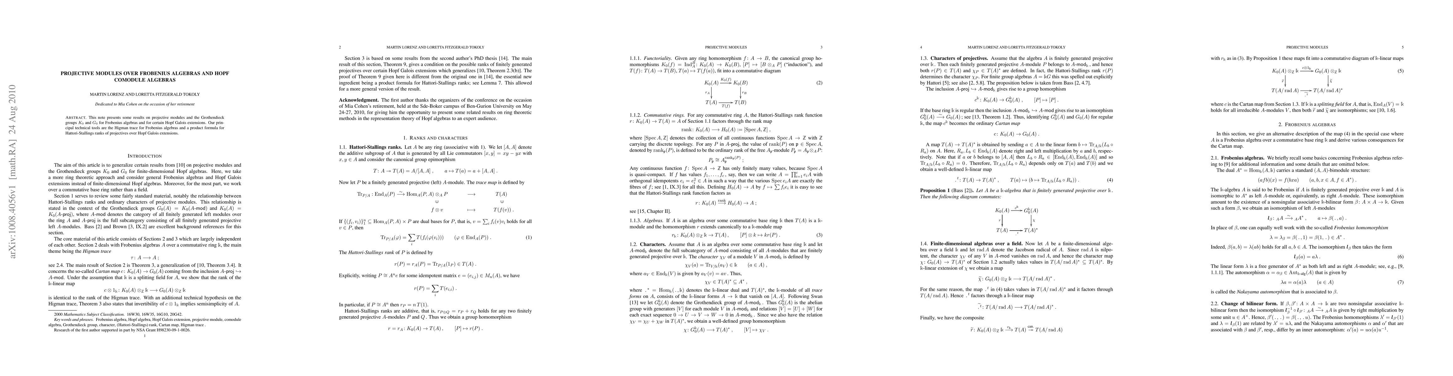 This paper explores projective modules over Frobenius algebras and Hopf comodule algebras, utilizing the Higman trace and a product formula for Hattori-Stallings ranks to investigate the Grothendieck groups K_0 and G_0.