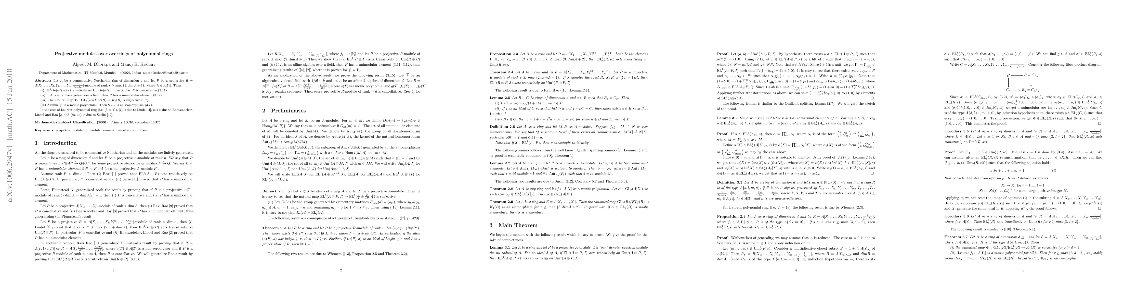 This paper investigates projective modules over overrings of polynomial rings, proving that certain projective modules over these rings are cancellative and have unimodular elements under specific conditions. It also establishes the surjectivity and isomorphism of certain natural maps in K-theory for these modules.