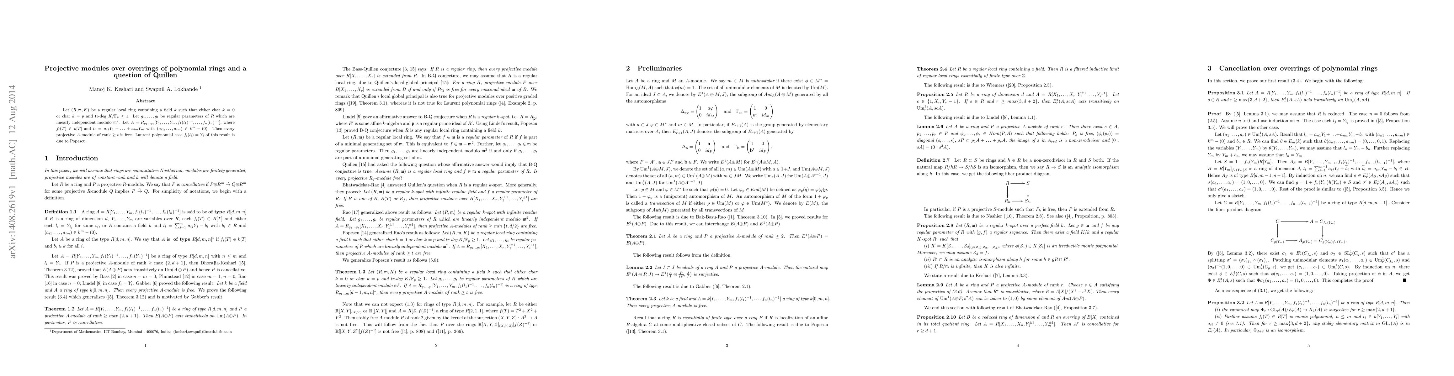 Let $(R,\mm,K)$ be a regular local ring containing a field $k$ such that either char $k=0$ or char $k=p$ and tr-deg $K/\BF_p\geq 1$. Let $g_1,\ldots,g_t$ be regular parameters of $R$ which are linearly independent modulo $\mm^2$. Let $A=R_{g_1\cdots g_t} [Y_1,\ldots,Y_m,f_1(l_1)^{-1},\ldots, f_n(l_n)^{-1}]$, where $f_i(T)\in k[T]$ and $l_i=a_{i1}Y_1+\ldots+a_{im}Y_m$ with $(a_{i1},\ldots,a_{im})\in k^m-(0)$. Then every projective $A$-module of rank $\geq t$ is free. Laurent polynomial case $f_i(l_i)=Y_i$ of this result is due to Popescu.