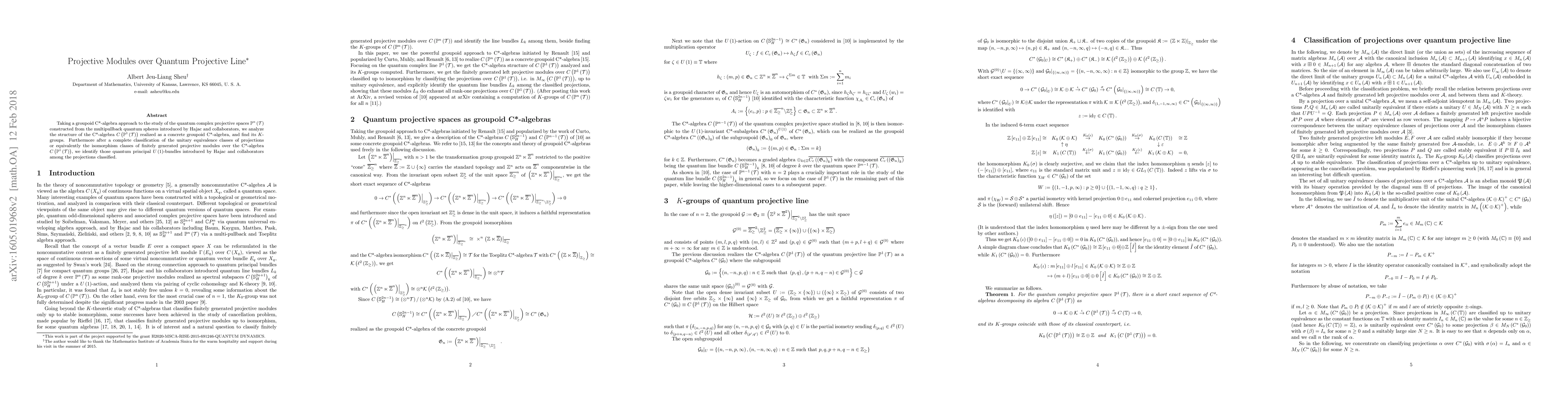 This paper employs a groupoid C*-algebra approach to analyze the structure and K-groups of the C*-algebra $C\left( \mathbb{P}^{1}\left( \mathcal{T}\right) \right)$ corresponding to the quantum projective line. It classifies finitely generated projective modules and identifies quantum principal $U\left( 1\right)$-bundles within these modules.