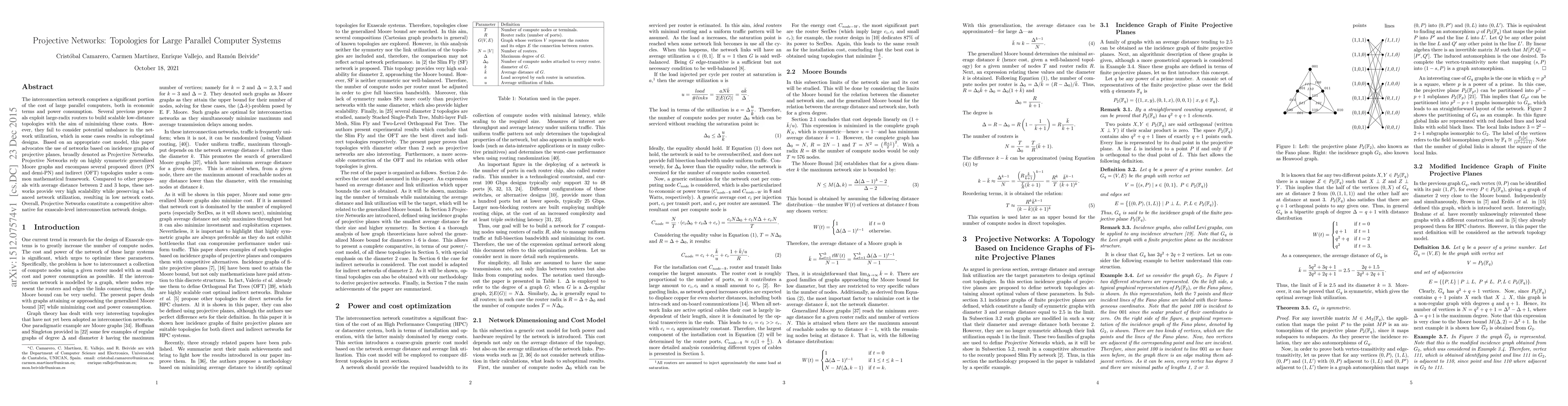 The interconnection network comprises a significant portion of the cost of large parallel computers, both in economic terms and power consumption. Several previous proposals exploit large-radix routers to build scalable low-distance topologies with the aim of minimizing these costs. However, they fail to consider potential unbalance in the network utilization, which in some cases results in suboptimal designs. Based on an appropriate cost model, this paper advocates the use of networks based on incidence graphs of projective planes, broadly denoted as Projective Networks. Projective Networks rely on highly symmetric generalized Moore graphs and encompass several proposed direct (PN and demi-PN) and indirect (OFT) topologies under a common mathematical framework. Compared to other proposals with average distance between 2 and 3 hops, these networks provide very high scalability while preserving a balanced network utilization, resulting in low network costs. Overall, Projective Networks constitute a competitive alternative for exascale-level interconnection network design.