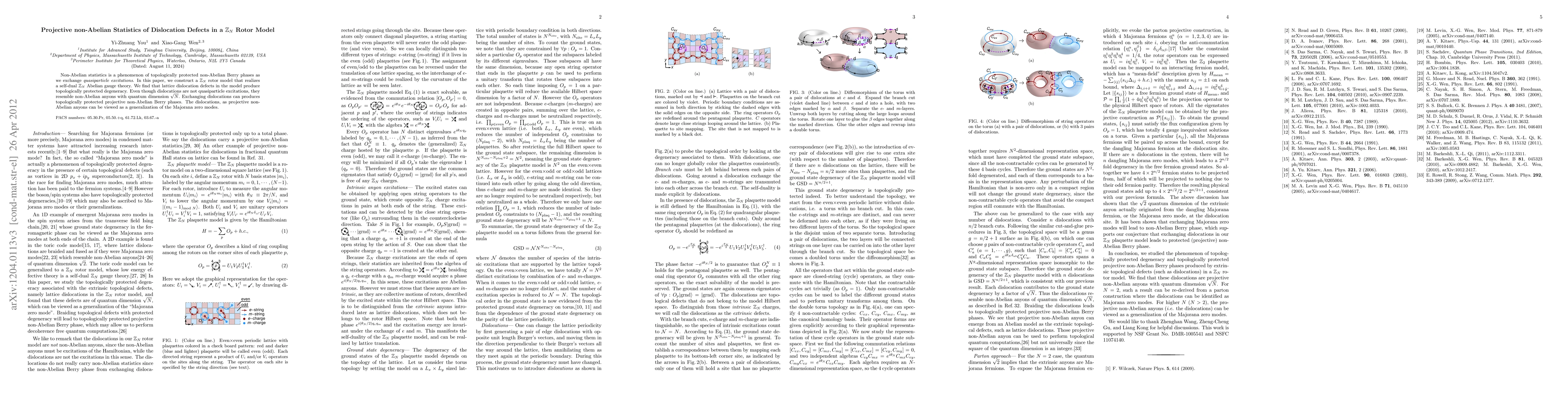 Non-Abelian statistics is a phenomenon of topologically protected non-Abelian Berry phases as we exchange quasiparticle excitations. In this paper, we construct a Z_N rotor model that realizes a self-dual Z_N Abelian gauge theory. We find that lattice dislocation defects in the model produce topologically protected degeneracy. Even though dislocations are not quasiparticle excitations, they resemble non-Abelian anyons with quantum dimension sqrt(N). Exchanging dislocations can produces topologically protected projective non-Abelian Berry phases. The dislocations, as projective non-Abelian anyons can be viewed as a generalization of the Majorana zero modes.
