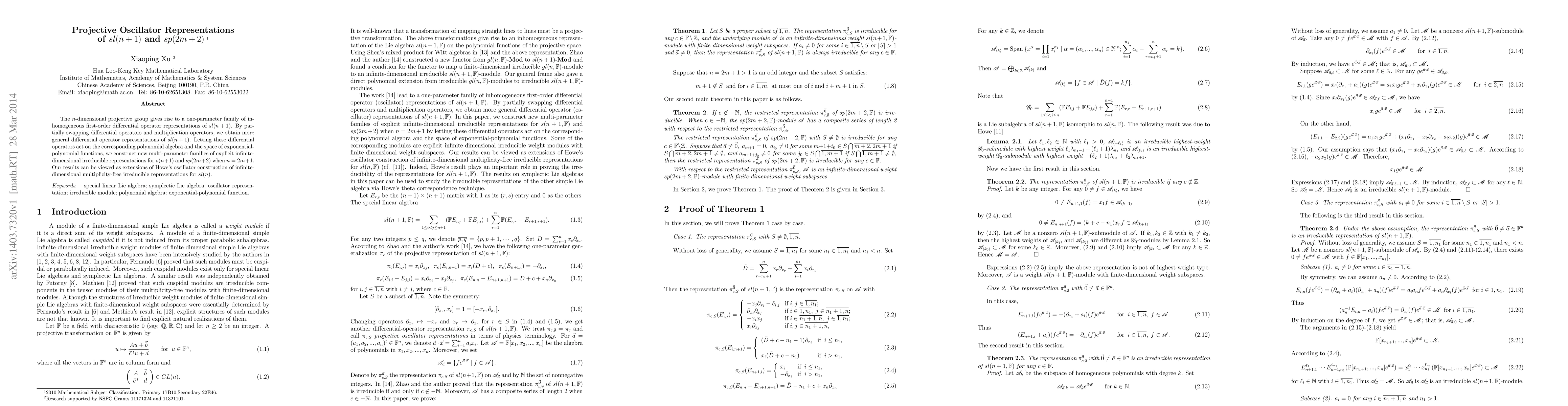 This paper develops projective oscillator representations for the Lie algebras sl(n+1) and sp(2m+2) by constructing new infinite-dimensional irreducible representations using differential operators and polynomial algebras. These representations extend Howe's oscillator construction for sl(n).