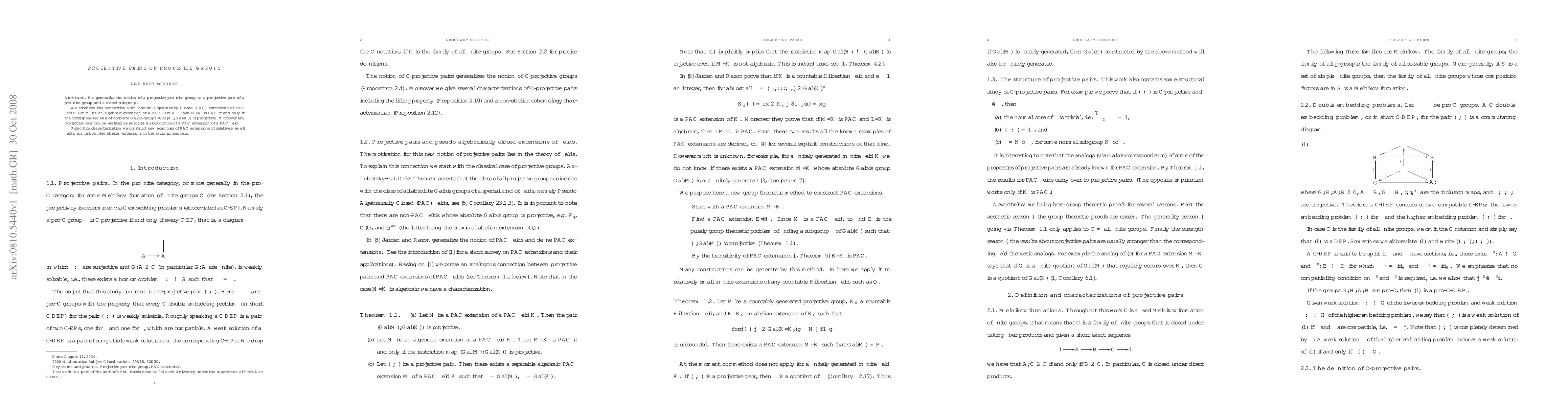 This paper generalizes the concept of projective profinite groups to projective pairs of a profinite group and its closed subgroup, establishing a link to Pseudo Algebraically Closed (PAC) field extensions. It demonstrates that a PAC field extension M/K corresponds to a projective pair (Gal(M),Gal(K)) of absolute Galois groups, and constructs new examples of PAC extensions, including unbounded abelian extensions of the rational numbers.