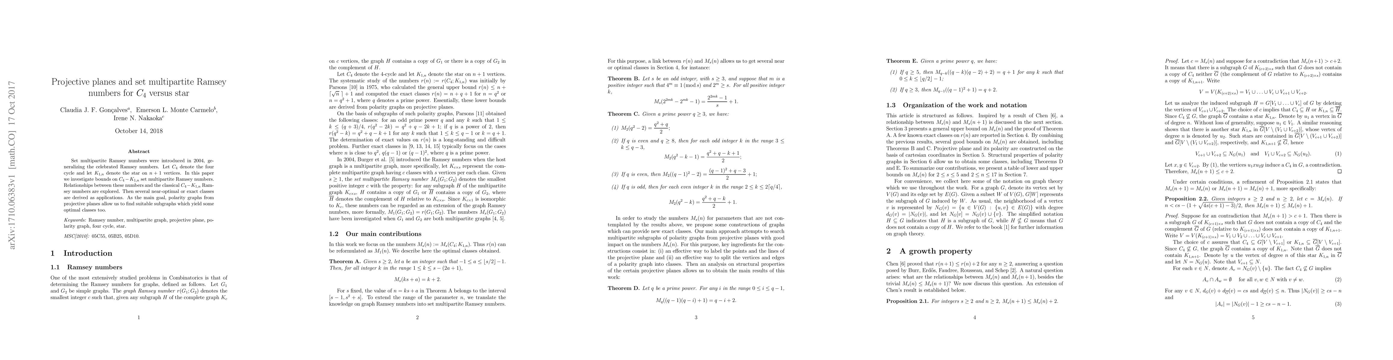 This paper investigates bounds on $C_4-K_{1,n}$ set multipartite Ramsey numbers, exploring their relationships with classical Ramsey numbers. Using polarity graphs from projective planes, the authors derive near-optimal or exact classes and find optimal subgraphs.