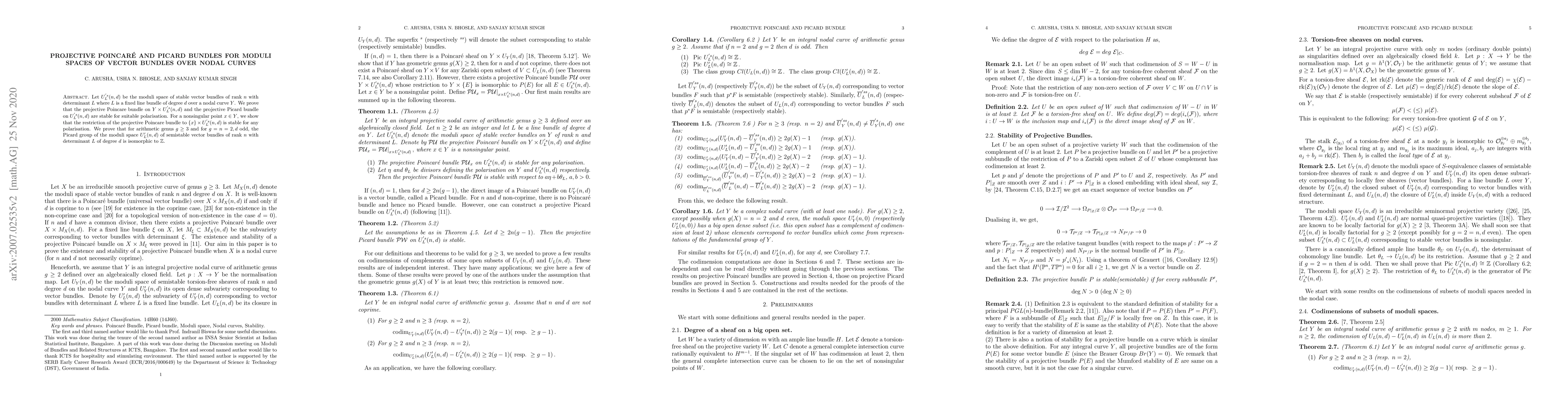 The research employs a combination of algebraic geometry techniques, including the study of moduli spaces of vector bundles over nodal curves, and utilizes projective Poincaré and Picard bundles for stability analysis.