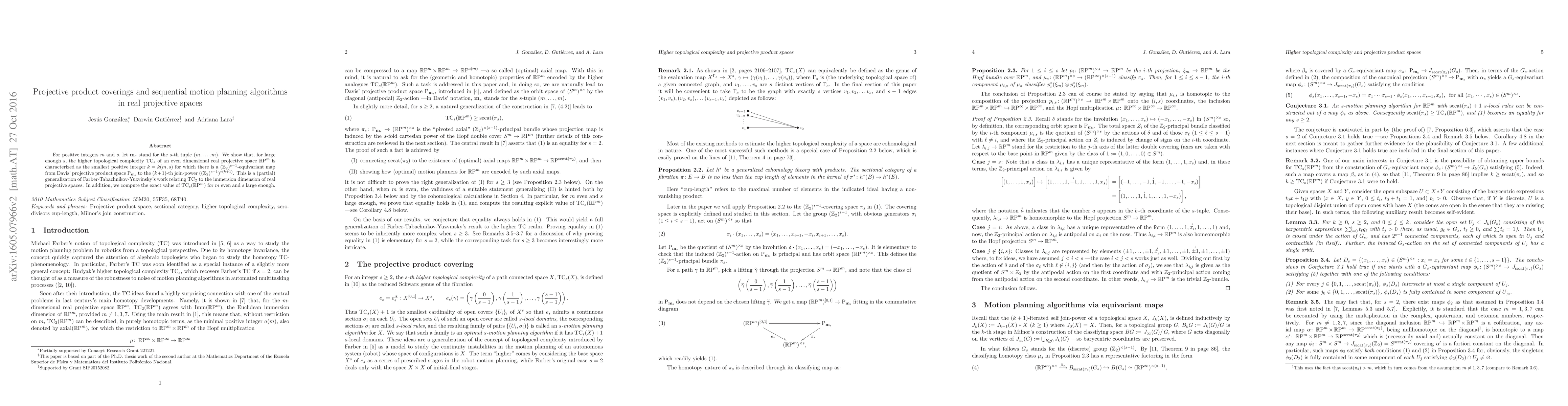 For positive integers $m$ and $s$, let $\mathbf{m}_s$ stand for the $s$-th tuple $(m,\ldots,m)$. We show that, for large enough $s$, the higher topological complexity $TC_s$ of an even dimensional real projective space $RP^m$ is characterized as the smallest positive integer $k=k(m,s)$ for which there is a $(\mathbb{Z}_2)^{s-1}$-equivariant map from Davis' projective product space $P_{\mathbf{m}_s}$ to the $(k+1)$-th join-power $((\mathbb{Z}_2)^{s-1})^{\ast(k+1)}$. This is a (partial) generalization of Farber-Tabachnikov-Yuzvinsky's work relating $TC_2$ to the immersion dimension of real projective spaces. In addition, we compute the exact value of $TC_s(RP^m)$ for $m$ even and $s$ large enough.