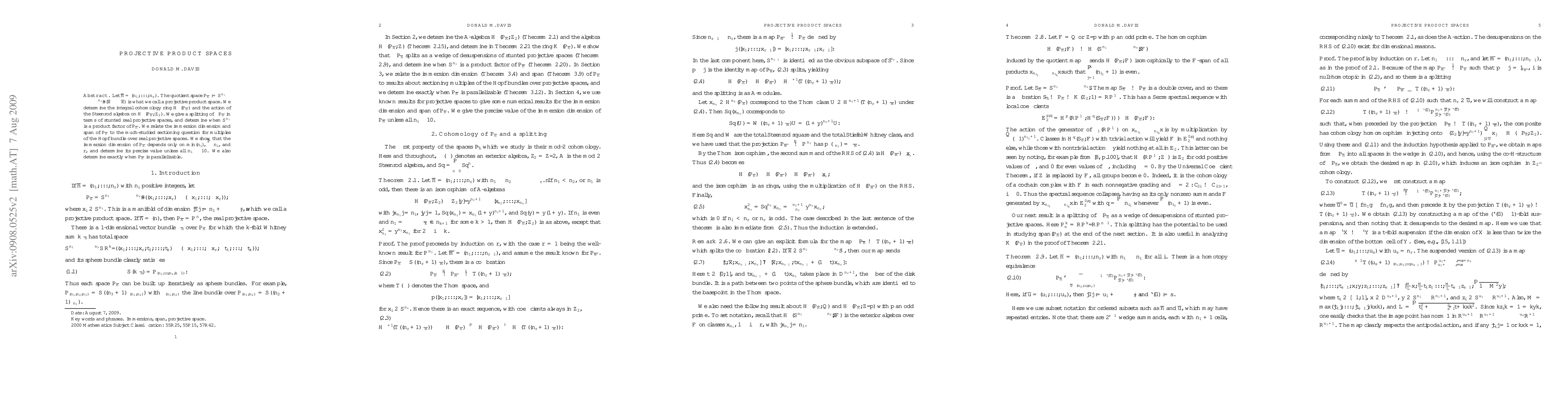 This paper investigates projective product spaces P_nbar, determining their integral cohomology ring, Steenrod algebra action, and splitting into stunted real projective spaces. It also examines the immersion dimension and span, showing their dependence on minimal and summed n_i values, and establishes conditions for parallelizability.