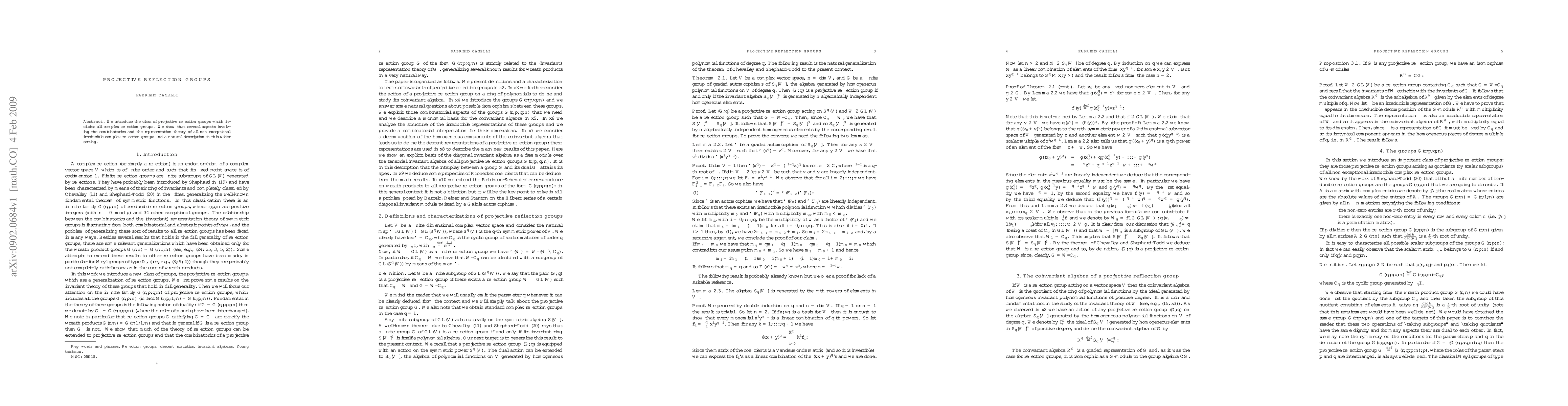 This paper introduces projective reflection groups, which unify complex reflection groups, providing a new framework for understanding their combinatorics and representation theory. This broader setting offers natural descriptions for several key aspects of non-exceptional irreducible complex reflection groups.