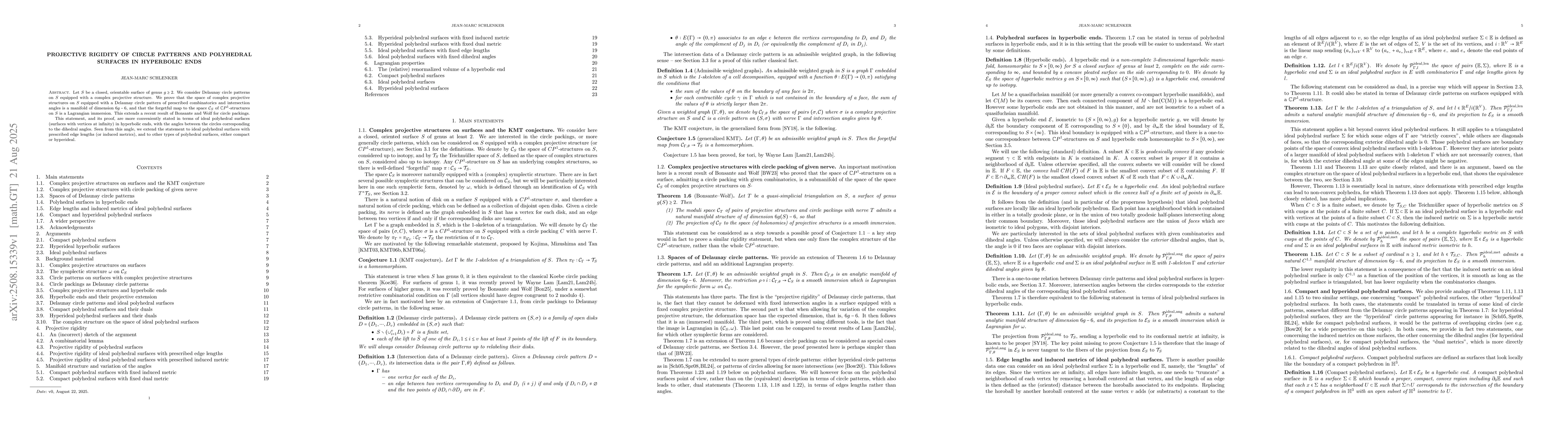 Let $S$ be a closed, orientable surface of genus $g\geq 2$. We consider Delaunay circle patterns on $S$ equipped with a complex projective structure. We prove that the space of complex projective structures on $S$ equipped with a Delaunay circle pattern of prescribed combinatorics and intersection angles is a manifold of dimension $6g-6$, and that the forgetful map to the space $\cC_S$ of $\CP^1$-structures on $S$ is a Lagrangian immersion. This extends a recent result of Bonsante and Wolf for circle packings. This statement, and its proof, are more conveniently stated in terms of ideal polyhedral surfaces (surfaces with vertices at infinity) in hyperbolic ends, with the angles between the circles corresponding to the dihedral angles. Seen from this angle, we extend the statement to ideal polyhedral surfaces with prescribed edge lengths (or induced metrics), and to other types of polyhedral surfaces, either compact or hyperideal.