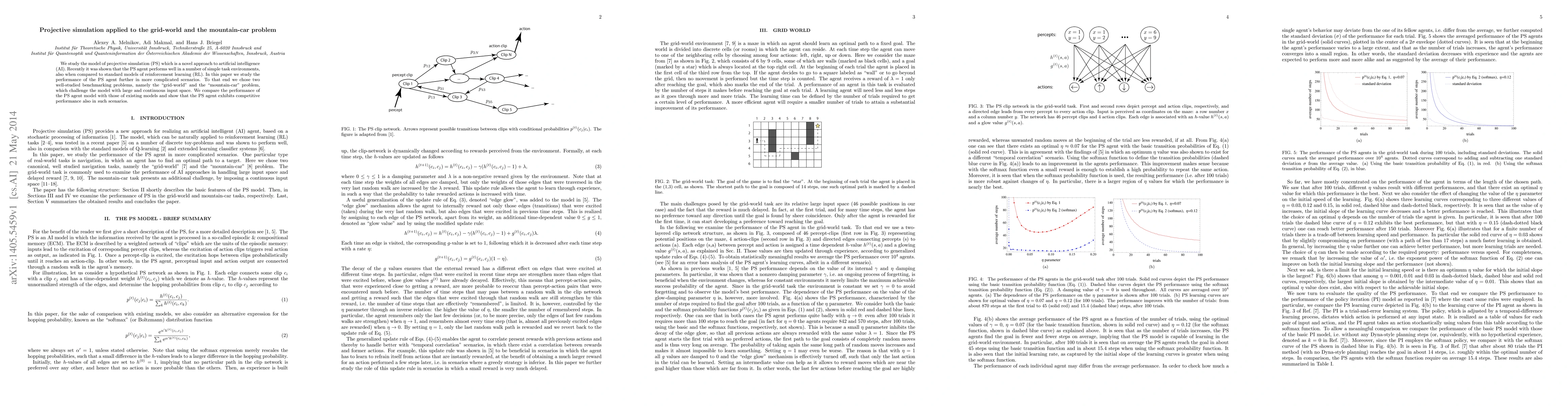 We study the model of projective simulation (PS) which is a novel approach to artificial intelligence (AI). Recently it was shown that the PS agent performs well in a number of simple task environments, also when compared to standard models of reinforcement learning (RL). In this paper we study the performance of the PS agent further in more complicated scenarios. To that end we chose two well-studied benchmarking problems, namely the "grid-world" and the "mountain-car" problem, which challenge the model with large and continuous input space. We compare the performance of the PS agent model with those of existing models and show that the PS agent exhibits competitive performance also in such scenarios.