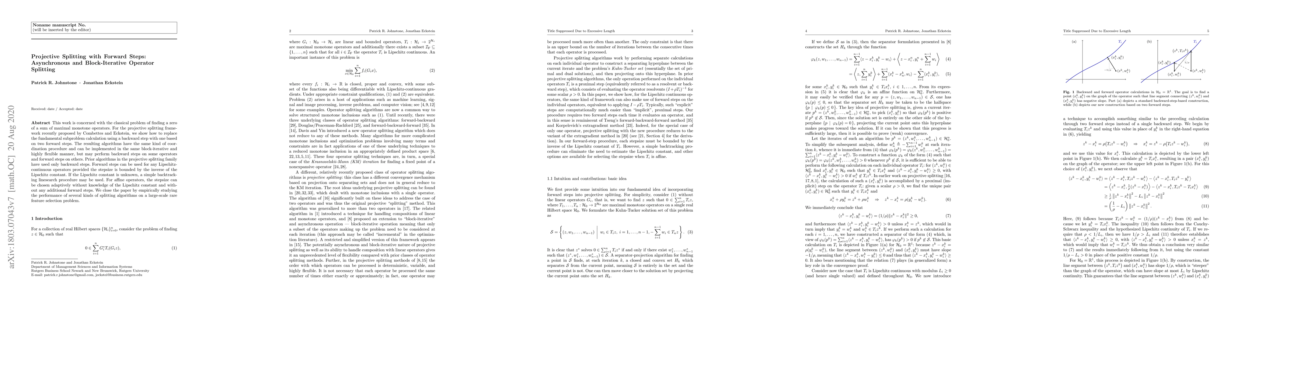 This paper proposes a new approach to projective splitting by replacing backward steps with forward steps in the calculation of subproblem solutions, allowing flexibility in operator selection. The resulting algorithms maintain coordination and block-iterative nature, and are tested on a large-scale rare feature selection problem.