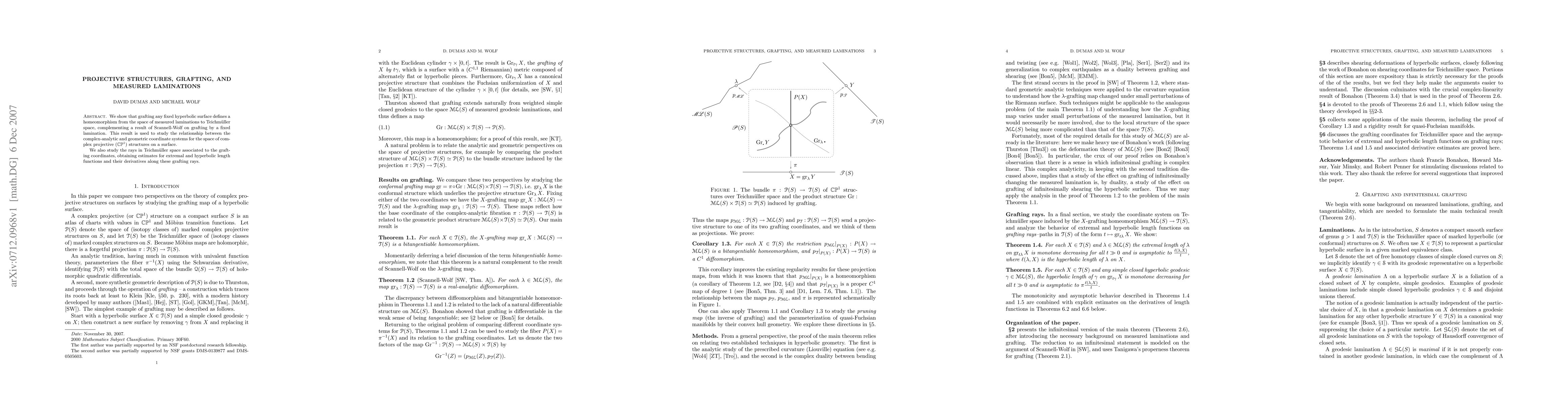 We show that grafting any fixed hyperbolic surface defines a homeomorphism from the space of measured laminations to Teichmuller space, complementing a result of Scannell-Wolf on grafting by a fixed lamination. This result is used to study the relationship between the complex-analytic and geometric coordinate systems for the space of complex projective ($\CP^1$) structures on a surface. We also study the rays in Teichmuller space associated to the grafting coordinates, obtaining estimates for extremal and hyperbolic length functions and their derivatives along these grafting rays.