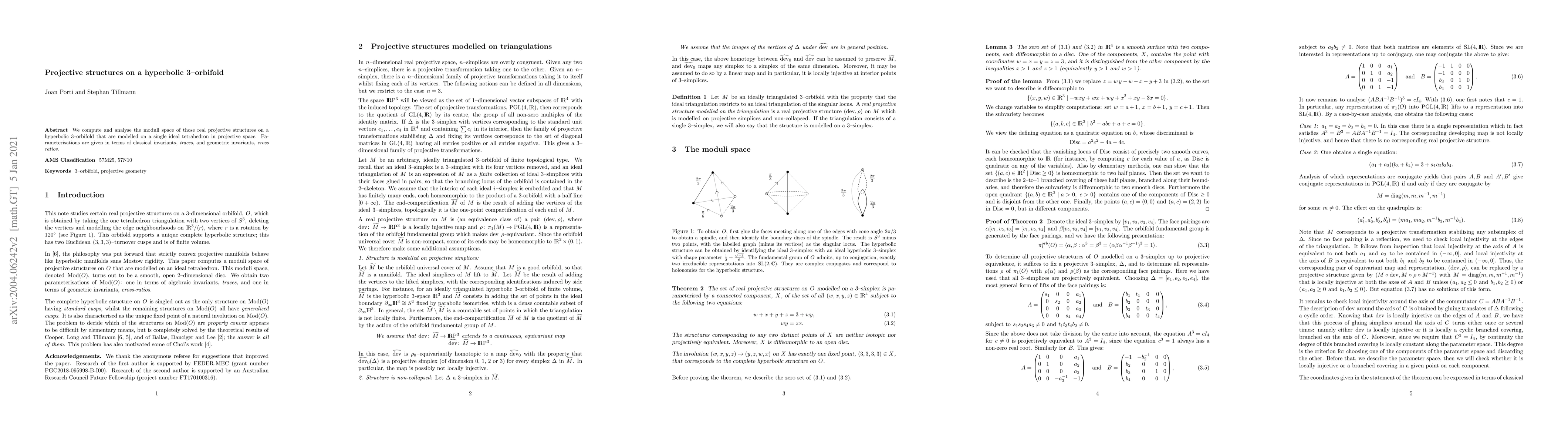We compute and analyse the moduli space of those real projective structures on a hyperbolic 3-orbifold that are modelled on a single ideal tetrahedron in projective space. Parameterisations are given in terms of classical invariants, traces, and geometric invariants, cross ratios.